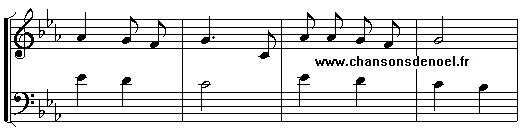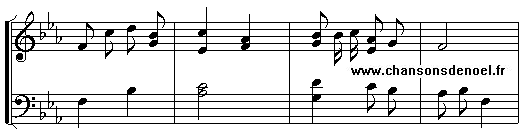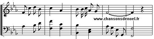 Chan-antons Noël, Noël, chan-an-tons ici, Dé-é-vo-tes gens, crions à-à Dieu merci ! Chantons Noël pour le Roi nouvelet Noël nouvelet, Noël chan-an-tons ici.
