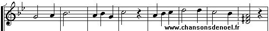 L'Angi : Pa-stre que sias ei mou-ta-gno, A ma vouas re-ve-iha vous Lou mes-sa--- gi lou pu dous, Vai rem-pli la cam-pa---gno Cre-gnès ren d'un Diou hu-rous, La pas nous ac-coum-pa- -gno. Lou Bergiè: Qu'es a-quou que cri-do Qu'es tant ma-ti-niè,