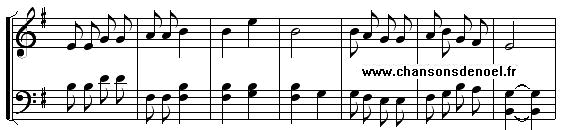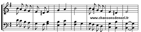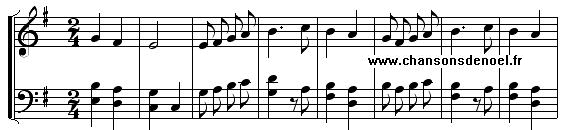 Car le jour est feriau Nous fumes en grant esmoi Nau, nau, Y ne sai pas qu'o puet e-es-tre Daux autres bergers et moi Nau, nau, En menant noz bebis pai-ai-stre